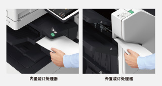 裝訂處理器中的多個紙張通道可以共用,從而確保該裝置小巧緊湊。此外,裝訂處理器還內置小型打孔器,讓系統(tǒng)更緊湊的同時,可滿足多種多樣的需求。