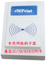 注:eMPrint專用網(wǎng)絡(luò)刷卡器為RJ45接口,通過TCP/IP協(xié)議進(jìn)行數(shù)據(jù)傳輸,支持射頻IC卡、ID卡、HID卡。