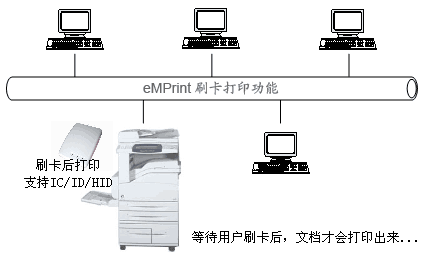 針對(duì)打印保密要求高的環(huán)境,啟用eMPrint刷卡打印控制功能。